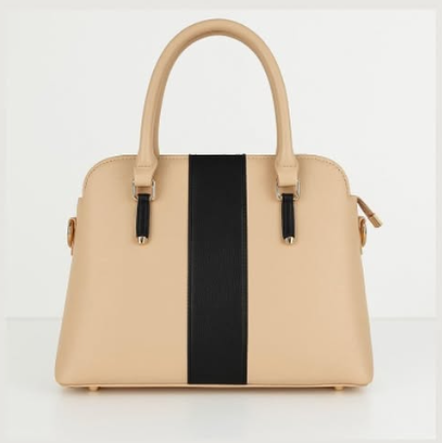 The HEAVEN Handbag is a structured, sophisticated satchel defined by its classic dome silhouette and striking central stripe accent. It offers a refined look for work or weekends and is available in various colors to suit any wardrobe.